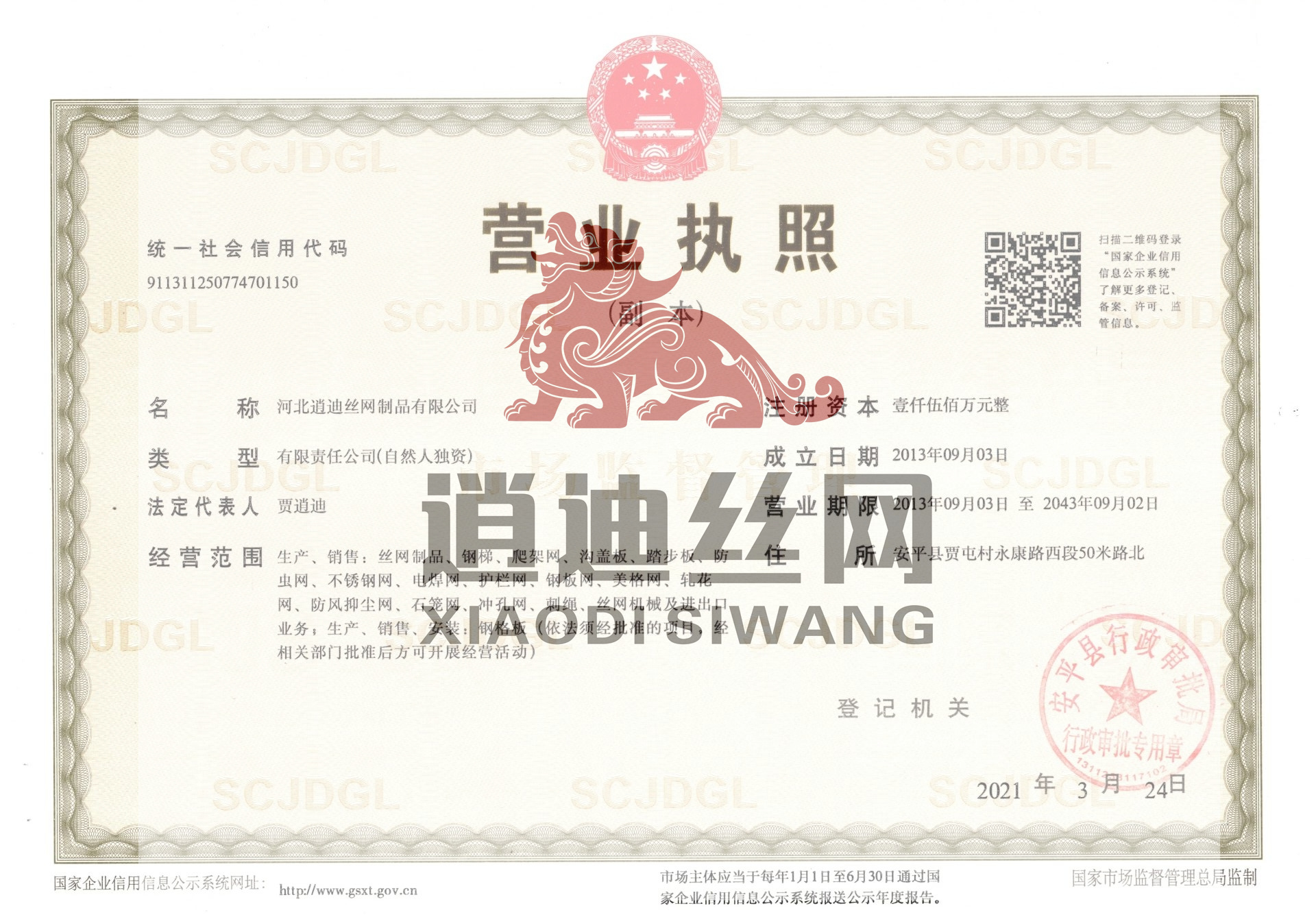 河北逍迪絲網(wǎng)制品有限公司誠信天下,誠信是我們公司一個(gè)原則問題不可撼動的,以心中有誠信的思想結(jié)交五湖四海的朋友,能達(dá)到雙贏是最好的,我們堅(jiān)信朋友多了路好走,我們公司都是老朋友多,我們一直是這樣做的。河北逍迪絲網(wǎng)制品有限公司成立于2013年注冊資本壹仟伍佰萬整,主要生產(chǎn)沖孔網(wǎng),鋼格板,金屬防蟲網(wǎng),如實(shí)的實(shí)體廠家,是一家-研發(fā)-銷售-生產(chǎn)-安裝-售后一條龍公司,2019年通過了ISO 9001認(rèn)證管理體系符合GB/T 19001-2016/ISO 9001:2015標(biāo)準(zhǔn),同時(shí)通過了SGS認(rèn)證,擁有商標(biāo)版權(quán)2品牌,擁有一個(gè)著作版權(quán),河北逍迪絲網(wǎng)制品有限公司位于中國有名的(絲網(wǎng)之鄉(xiāng))安平縣,于天津,北京,雄安,石家莊相鄰,交通非常發(fā)達(dá),出口可以選擇天津港口非常近每天都有接貨送貨往返車輛,空運(yùn)可以選擇石家莊正定機(jī)場,附近也有鐵路運(yùn)輸,當(dāng)?shù)剡€有兩個(gè)生態(tài)物流園區(qū)發(fā)往全國各地,我們沖孔網(wǎng)工廠生產(chǎn)設(shè)備有:普通沖壓機(jī),高速沖壓機(jī),自主研發(fā)小微孔沖壓機(jī),龍門沖,磚塔沖孔,重型沖孔機(jī),萬瓦級別激光切割機(jī),3000W激光切割機(jī),焊接設(shè)備,折彎機(jī),校平機(jī),剪板機(jī),精密校平機(jī),(對板面平整度要求苛刻的客戶群體0.5-0.2誤差)我們公司銷售市場沒有局限性國內(nèi)國外都供應(yīng),擁有出口權(quán)...